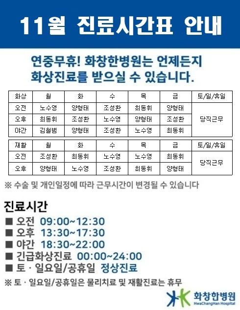 화창한병원은 빠른 일상복귀를 위한 상태에 맞는 알맞은 치료를 약속드립니다
